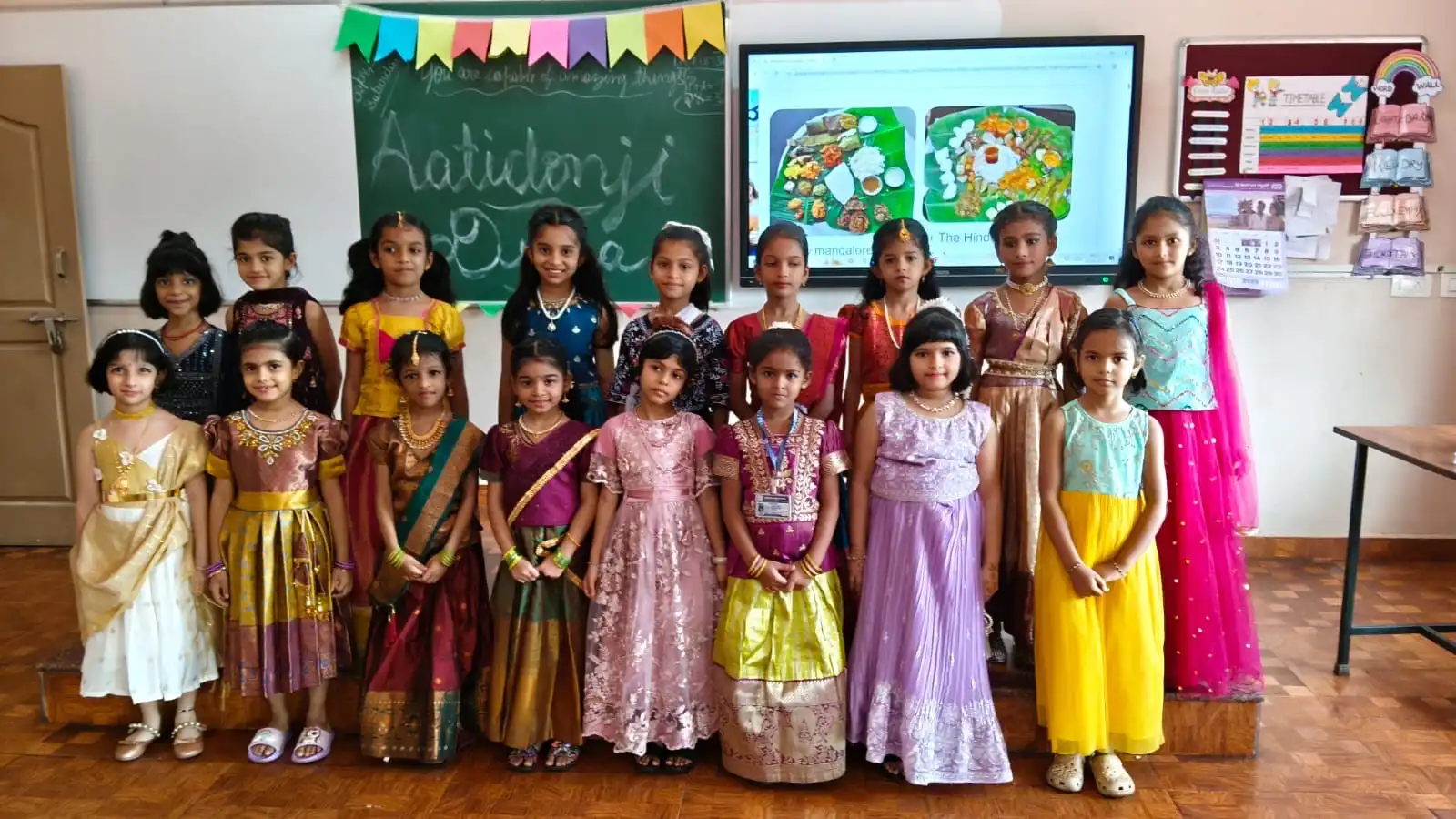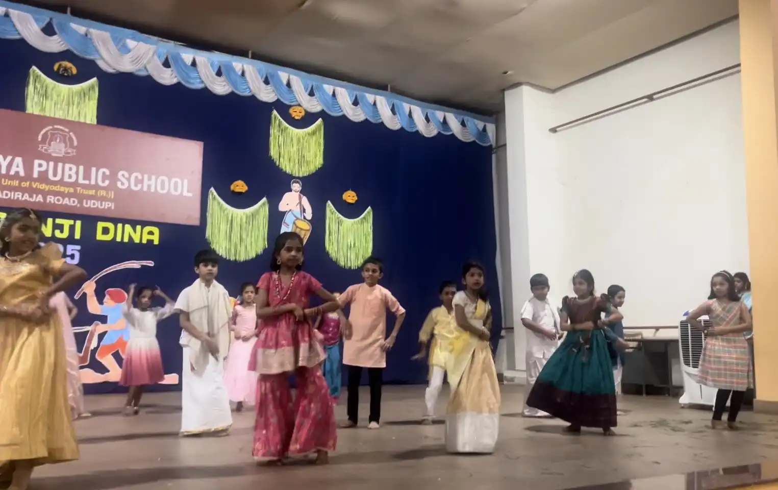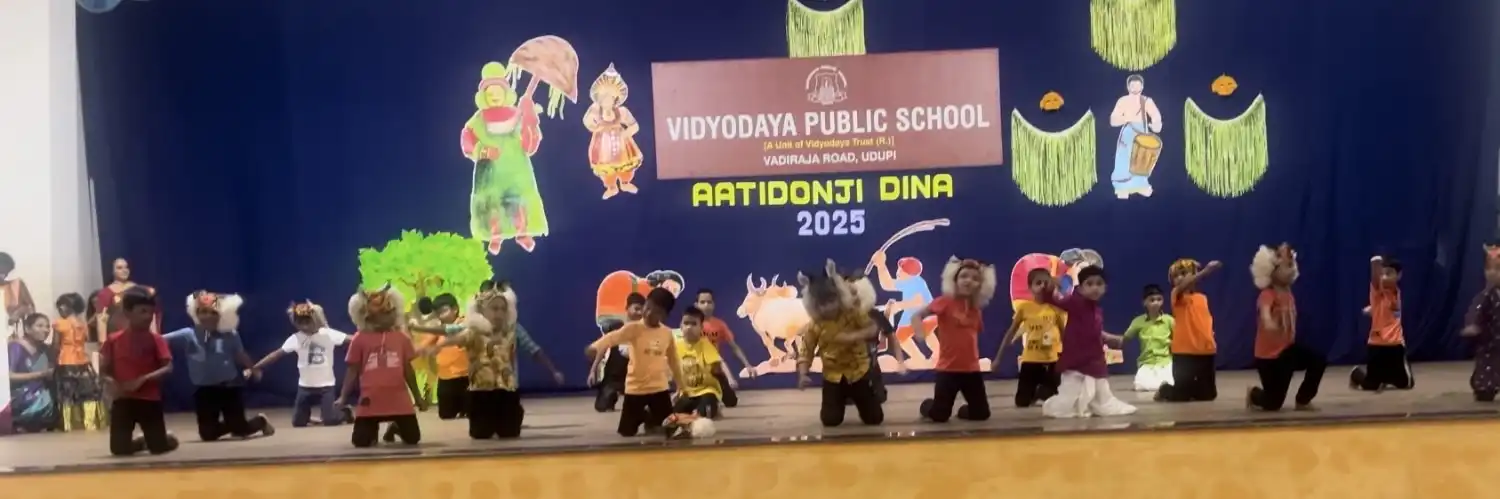The Aatidonji Dina celebration at Vidyodaya Public School, Udupi, was a grand success, held on August 2, 2025. The event aimed to introduce students to the rich cultural heritage and traditions of Tulunadu. Students from Classes 1 to V participated actively, and parents were also invited to witness the celebrations.