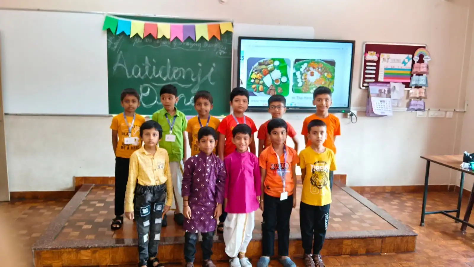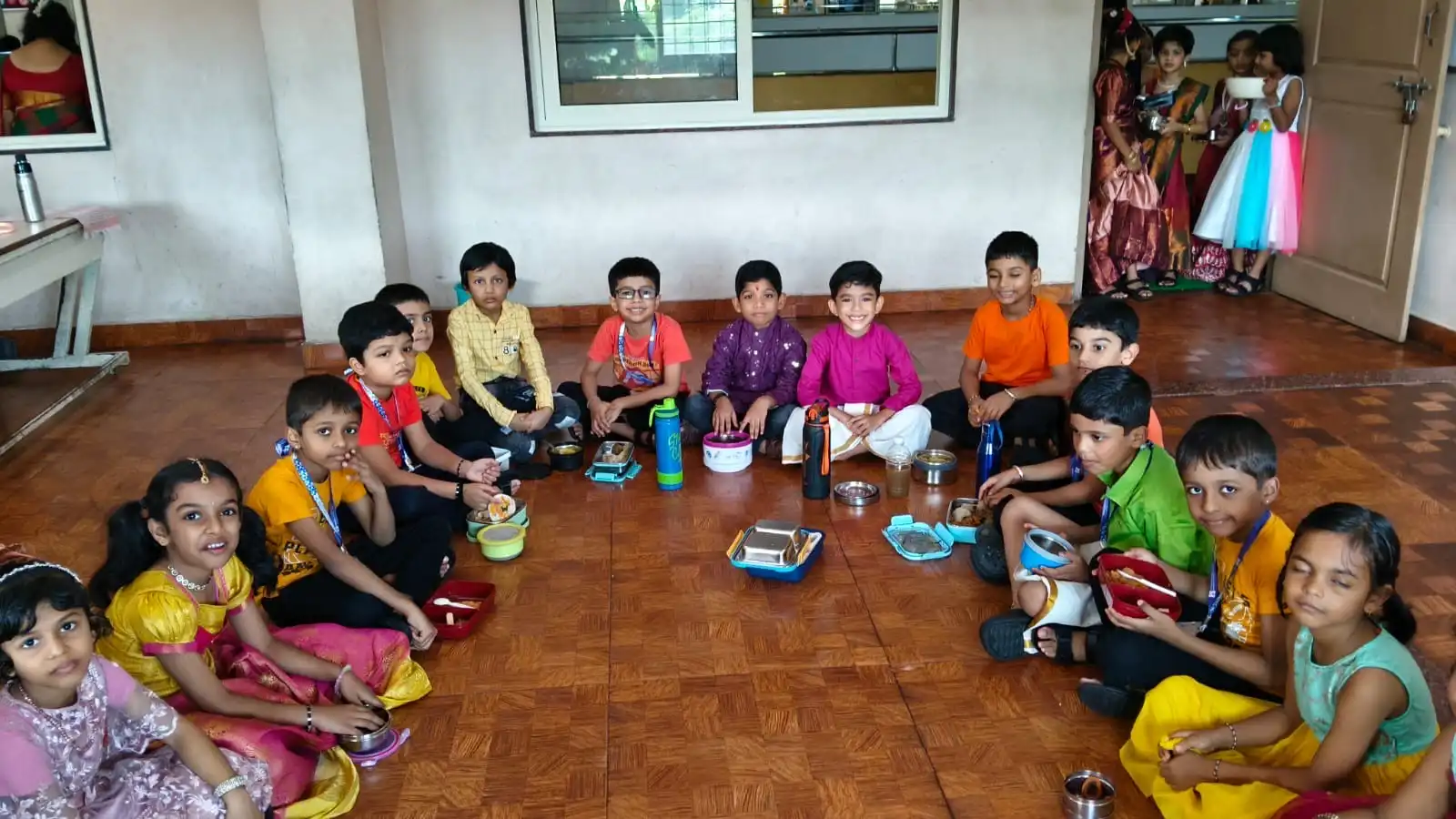 The program began with a traditional welcome by the students, followed by folk songs and dances that beautifully showcased rural life during the monsoon season (Aati month). The students got to taste traditional Aati dishes like patrode, patholi, and other special dishes prepared by their parents, which added to the festive spirit.