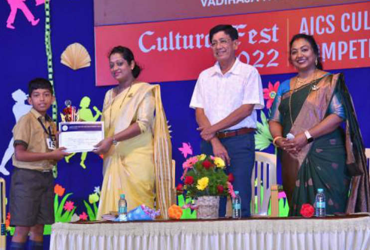 On 15th October 2022, the school hosted AICS Cultural Fest – 2022, ICSE – CBSE Inter School Cultural Competitions with great enthusiasm. The event was inaugurated by lighting the lamp by the Chief Guest Mrs. Eliza Vaz, Principal of Christ School, Manipal, with the presence of School Working President Sri N. Nagaraj Ballal, School Secretary Sri K. Ganesh Rao and PrincipalMrs. Anitha P. Raj. The dignitaries addressedthe gathering with their inspiring words.