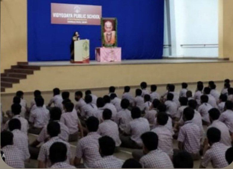 Vidydaya Public School celebrated Guru Poornima on 13 July 2022. Principal Smt. Anitha P. Raj explained the importance of Gurupoornima and the role of Guru in transforming the lives of students. Programme commenced by lighting the lamp. Students, Teachers and all the members of Vidyodaya Public School took part in this event.