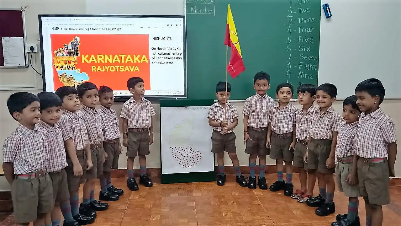 ನವೆಂಬರ್ 4 ರಂದು ವಿದ್ಯೋದಯ ಪಬ್ಲಿಕ್ ಸ್ಕೂಲ್ ನ ಪೂರ್ವ ಪ್ರಾಥಮಿಕ ವಿಭಾಗವು ಕನ್ನಡ ರಾಜ್ಯೋತ್ಸವವನ್ನು ಸಂಭ್ರಮ ಮತ್ತು ಹೆಮ್ಮೆಯಿಂದ ಆಚರಿಸಿತು. ಕರ್ನಾಟಕದ ಶ್ರೀಮಂತ ಭಾಷಾ ಪರಂಪರೆ ಮತ್ತು ಕನ್ನಡದ ಬಗ್ಗೆ ಪ್ರೀತಿ ಹಾಗೂ ಗೌರವವನ್ನು ಹುಟ್ಟುಹಾಕುವ ನೆಲೆಯಲ್ಲಿ "ಕನ್ನಡ ನಾಡು" ಎಂದು ಕರೆಯಲ್ಪಡುವ ಕರ್ನಾಟಕದ ಇತಿಹಾಸ, ಪ್ರಾಮುಖ್ಯತೆ ಮತ್ತು ಕನ್ನಡ ಭಾಷೆಯ ಸಾಂಸ್ಕೃತಿಕ ಮಹತ್ವವನ್ನು ವಿವರಿಸುವ ಮೂಲಕ ಶಿಕ್ಷಕರು ವಿದ್ಯಾರ್ಥಿಗಳೊಂದಿಗೆ ಅಮೂಲ್ಯವಾದ ಒಳನೋಟಗಳನ್ನು ಹಂಚಿಕೊಂಡರು. ಭಾಷೆಯನ್ನು ಉಳಿಸುವ ಮತ್ತು ಬೆಳೆಸುವ ಅಗತ್ಯತೆಯನ್ನು ವಿವರಿಸಿದರು. ಜೊತೆಗೆ, ವಿದ್ಯಾರ್ಥಿಗಳಿಗೆ ಕನ್ನಡದ ಹೆಸರಾಂತ ಕವಿಗಳ ಪರಿಚಯ, ಅವರ ಕೃತಿಗಳು ಭಾಷೆ ಮತ್ತು ಸಾಹಿತ್ಯ ಶ್ರೀಮಂತಿಕೆಯನ್ನು ಪರಿಚಯಿಸಲಾಯ್ತು. ಮಕ್ಕಳು ಒಟ್ಟಾಗಿ "ನಾಡ ಗೀತೆ" ಅನ್ನು ಹೆಮ್ಮೆಯಿಂದ ಹಾಡಿ ಏಕತೆಯನ್ನು ಮೆರೆದರು. ಕನ್ನಡ ರಾಜ್ಯೋತ್ಸವ ಆಚರಣೆಯು ಸ್ಮರಣೀಯವಾಗಿ ವಿದ್ಯಾರ್ಥಿಗಳ ಹೃದಯದಲ್ಲಿ ಕರ್ನಾಟಕದ ಸಂಸ್ಕೃತಿ ಮತ್ತು ಭಾಷೆಯ ಬಗ್ಗೆ ಅಪರಿಮಿತ ಅಭಿಮಾನ ಬೆಳೆಸಿತು.