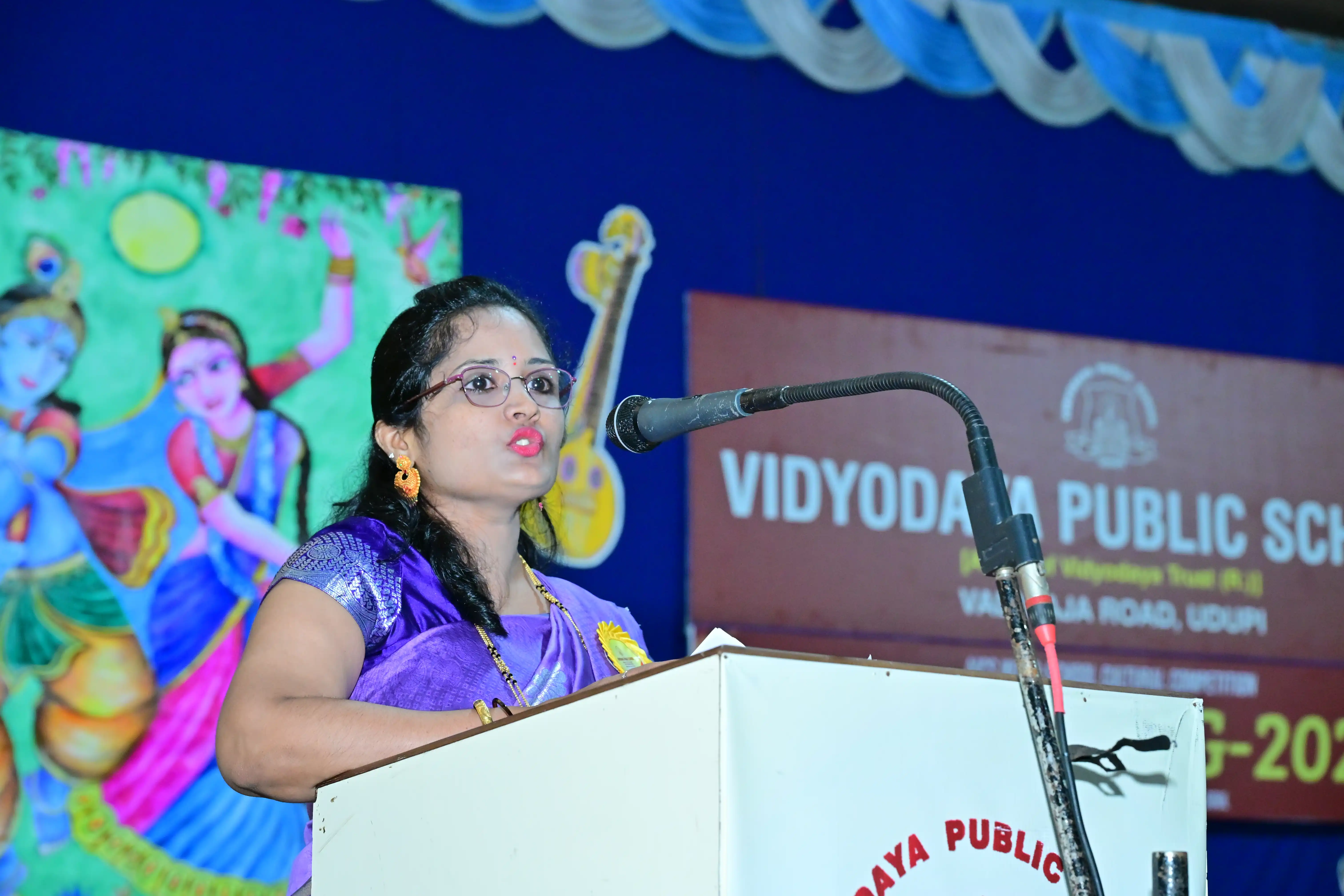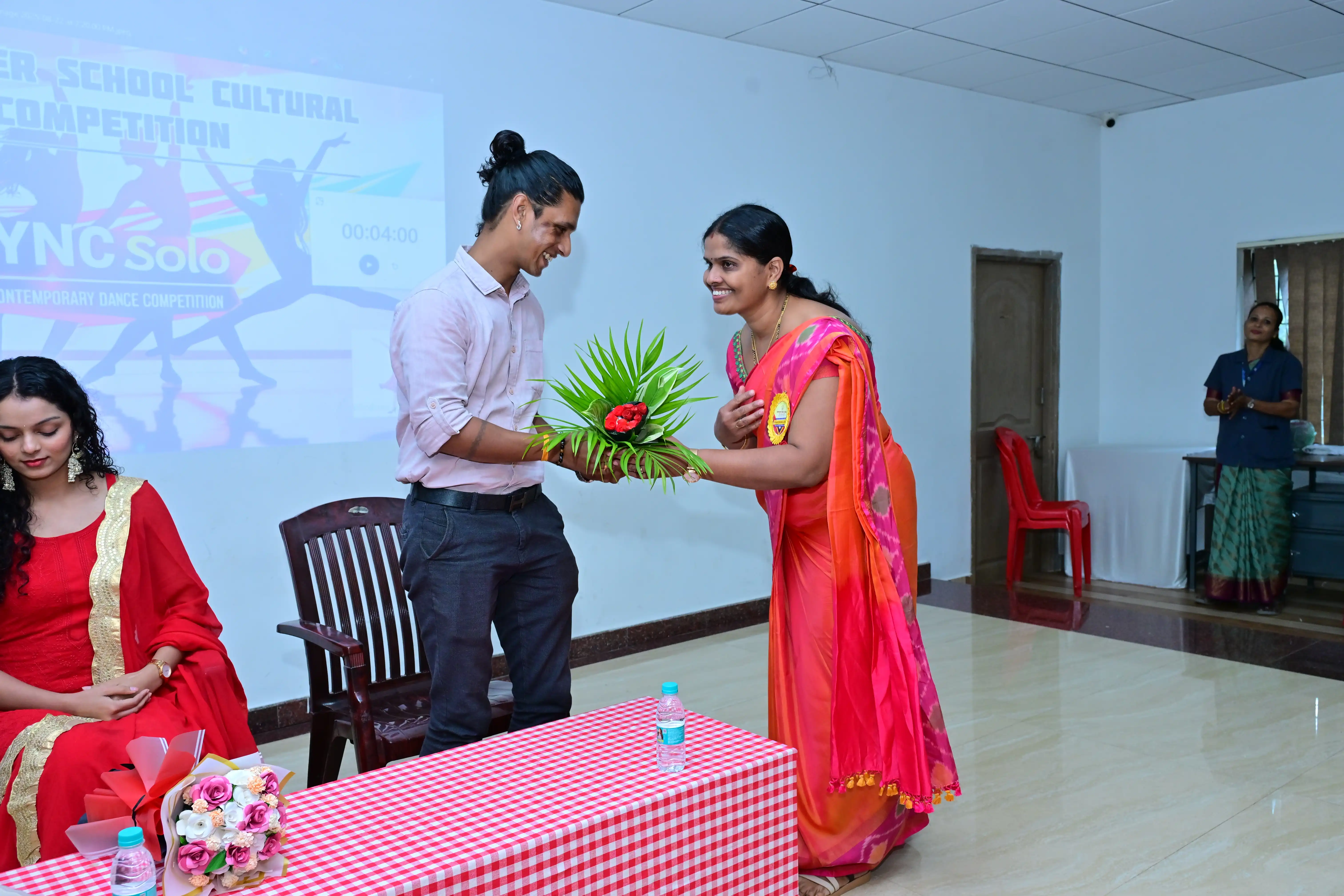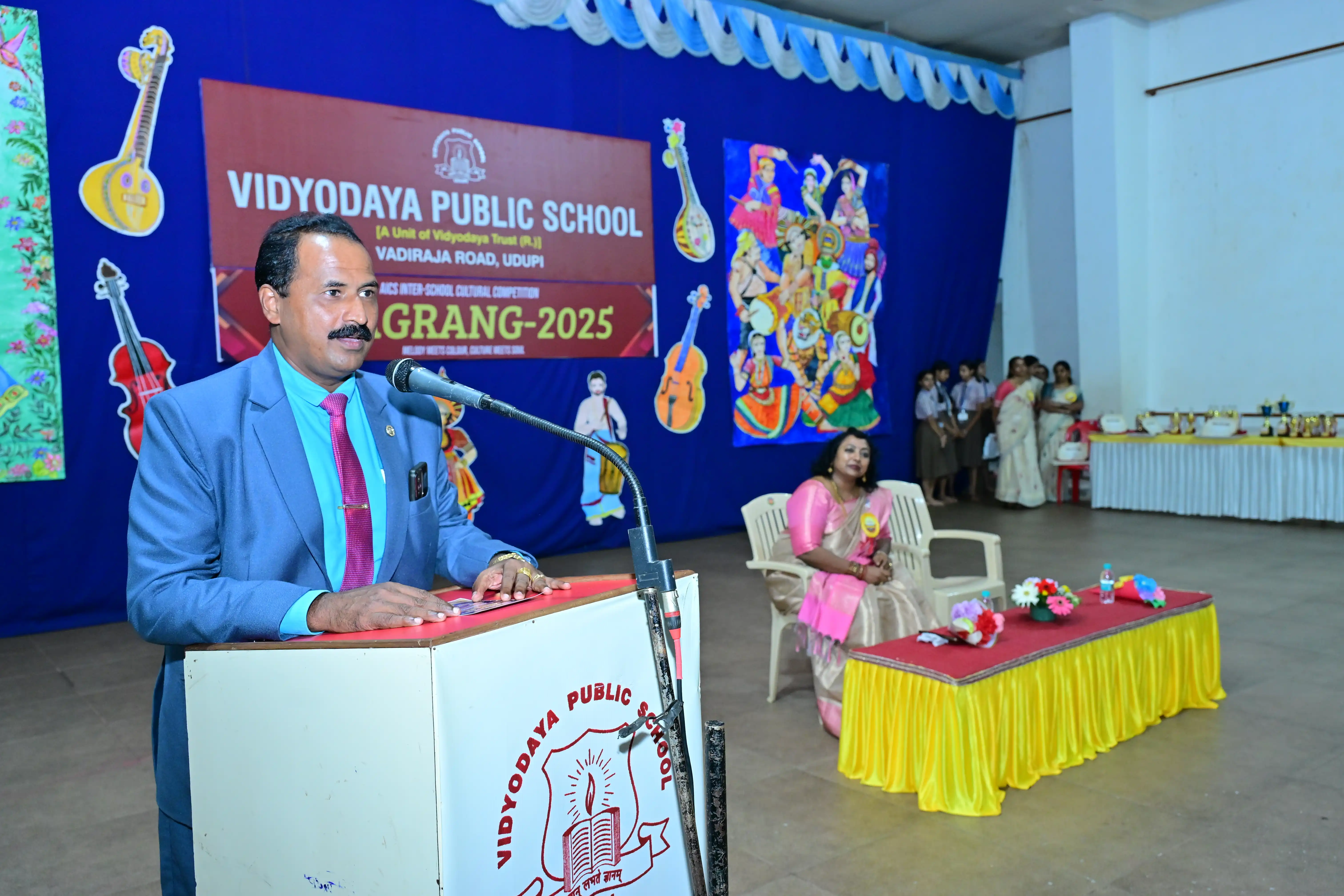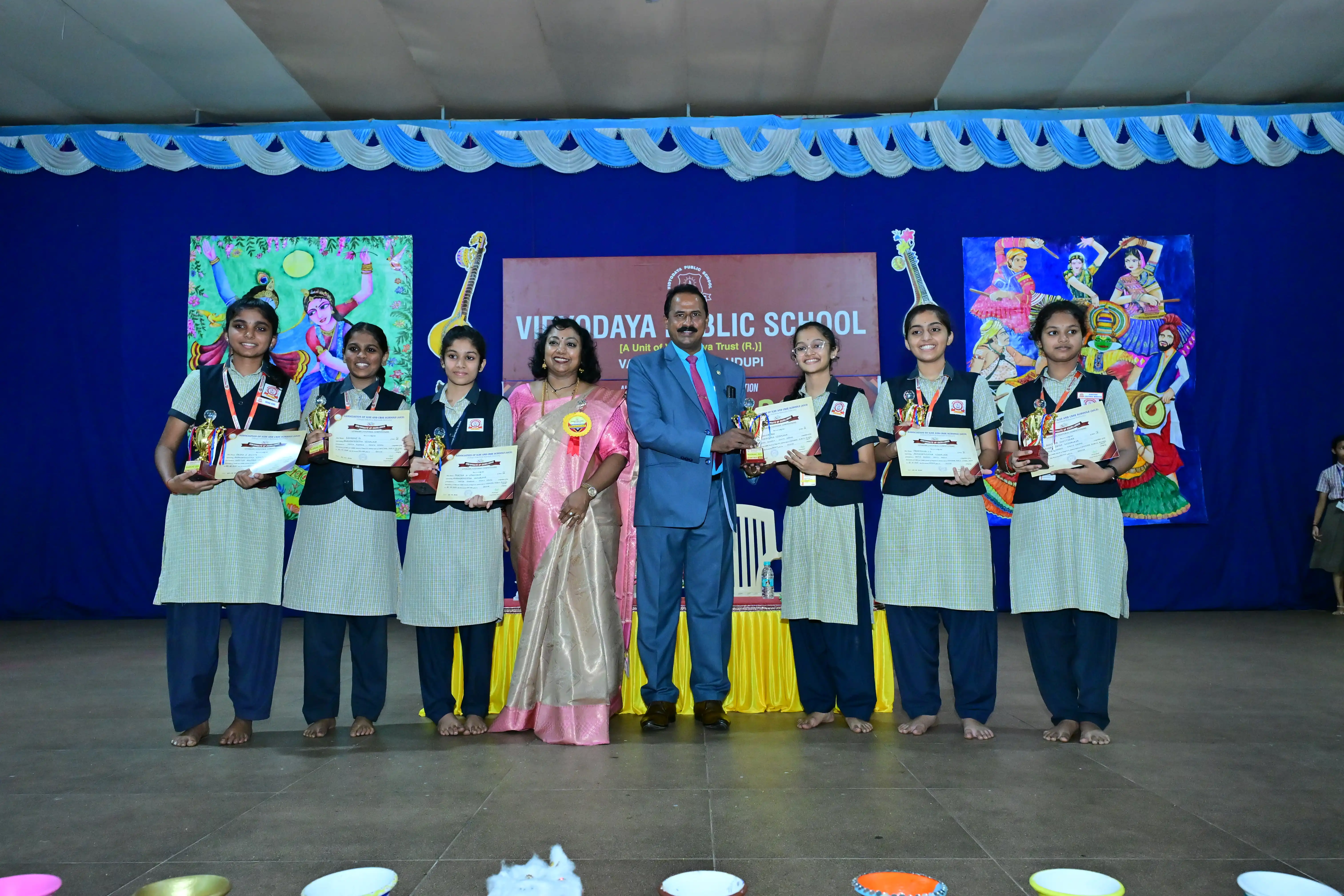 The valedictory function was graced by Chief Guest Sri. Vincent D'Costa, Principal of Sharada Residential School, Udupi. During the function, trophies were distributed to the winners, and championship trophies were awarded to the overall winners and runner-up. The Chief Guest addressed the gathering, congratulating the winners and participants.