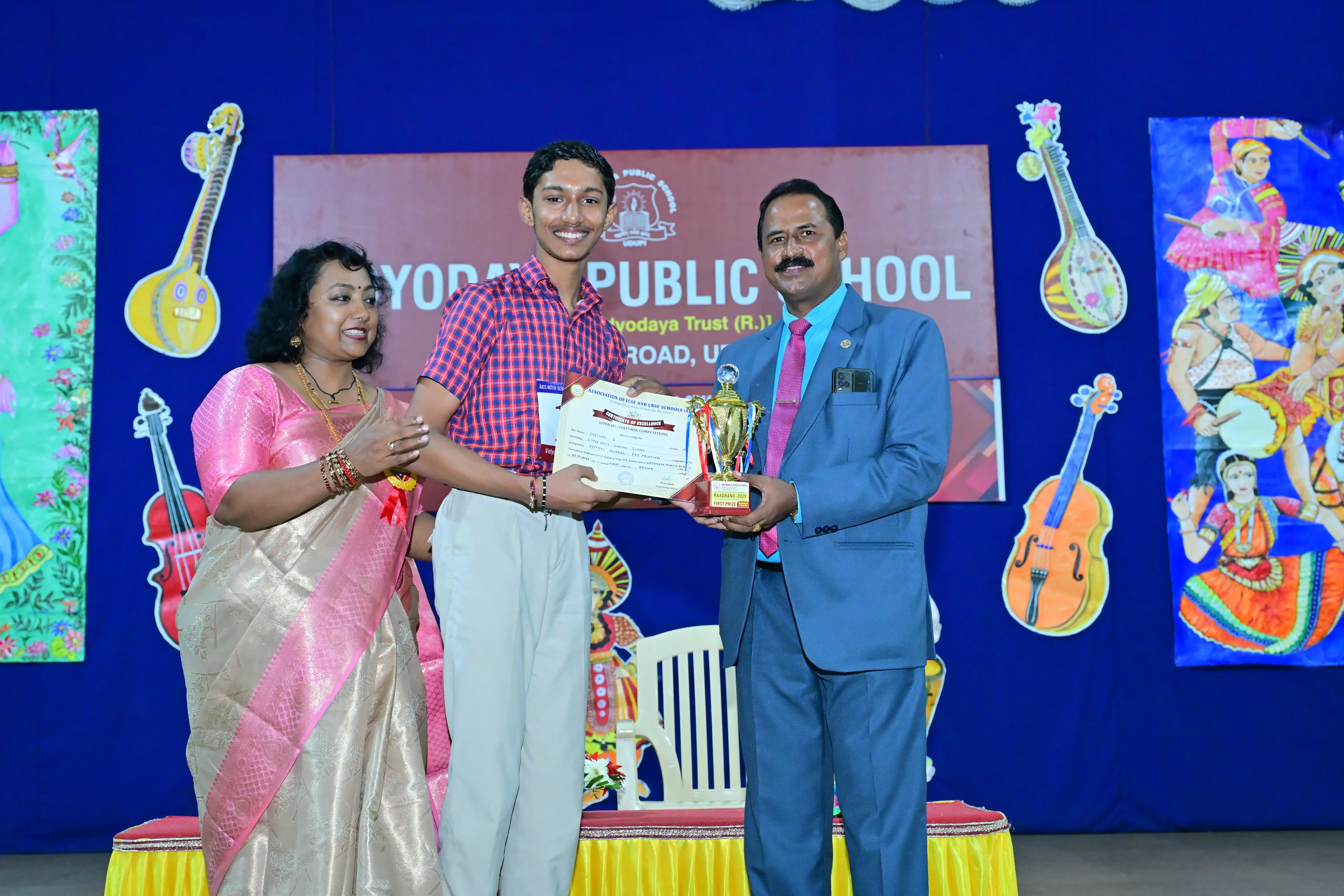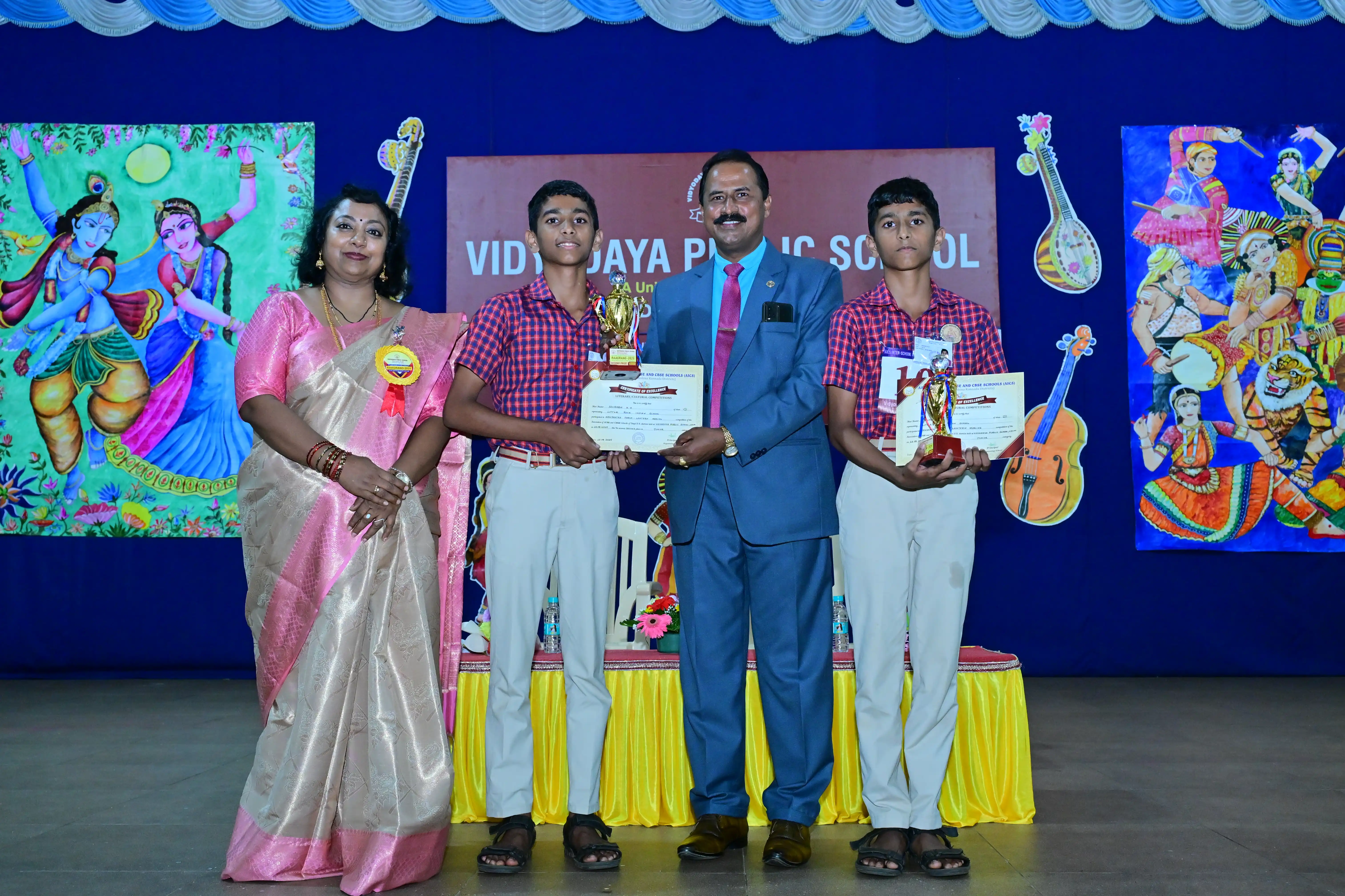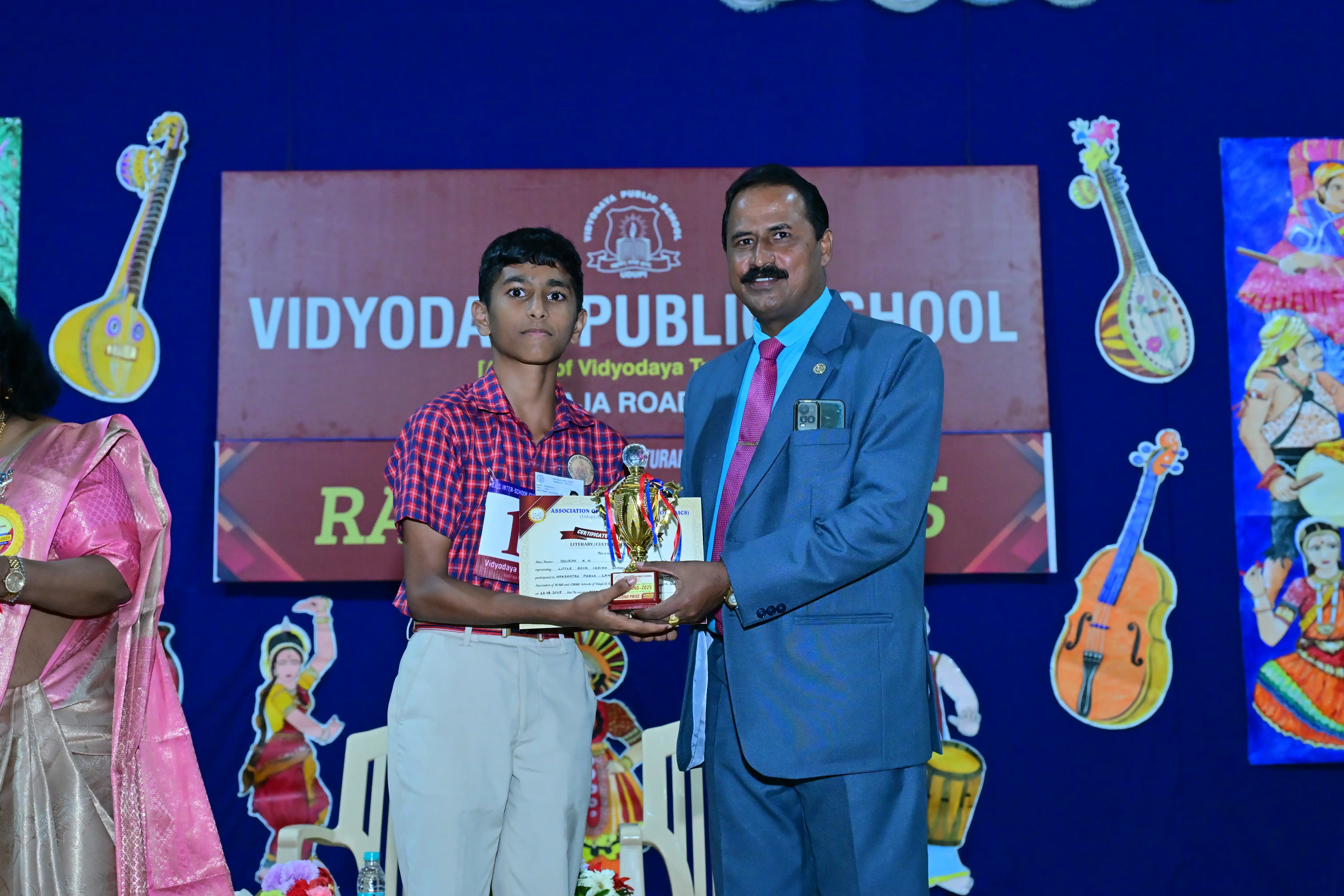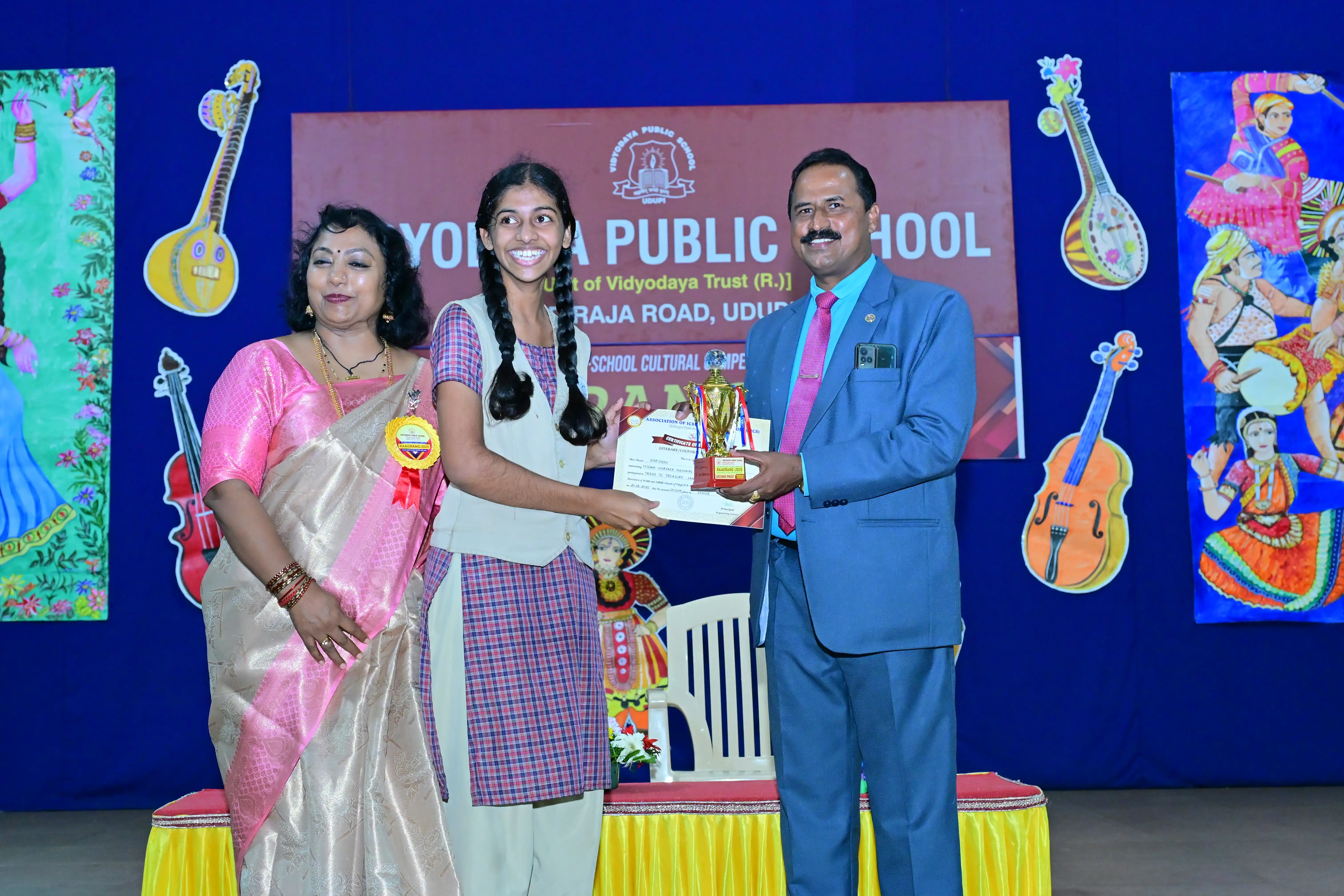 The valedictory function was graced by Chief Guest Sri. Vincent D'Costa, Principal of Sharada Residential School, Udupi. During the function, trophies were distributed to the winners, and championship trophies were awarded to the overall winners and runner-up. The Chief Guest addressed the gathering, congratulating the winners and participants.