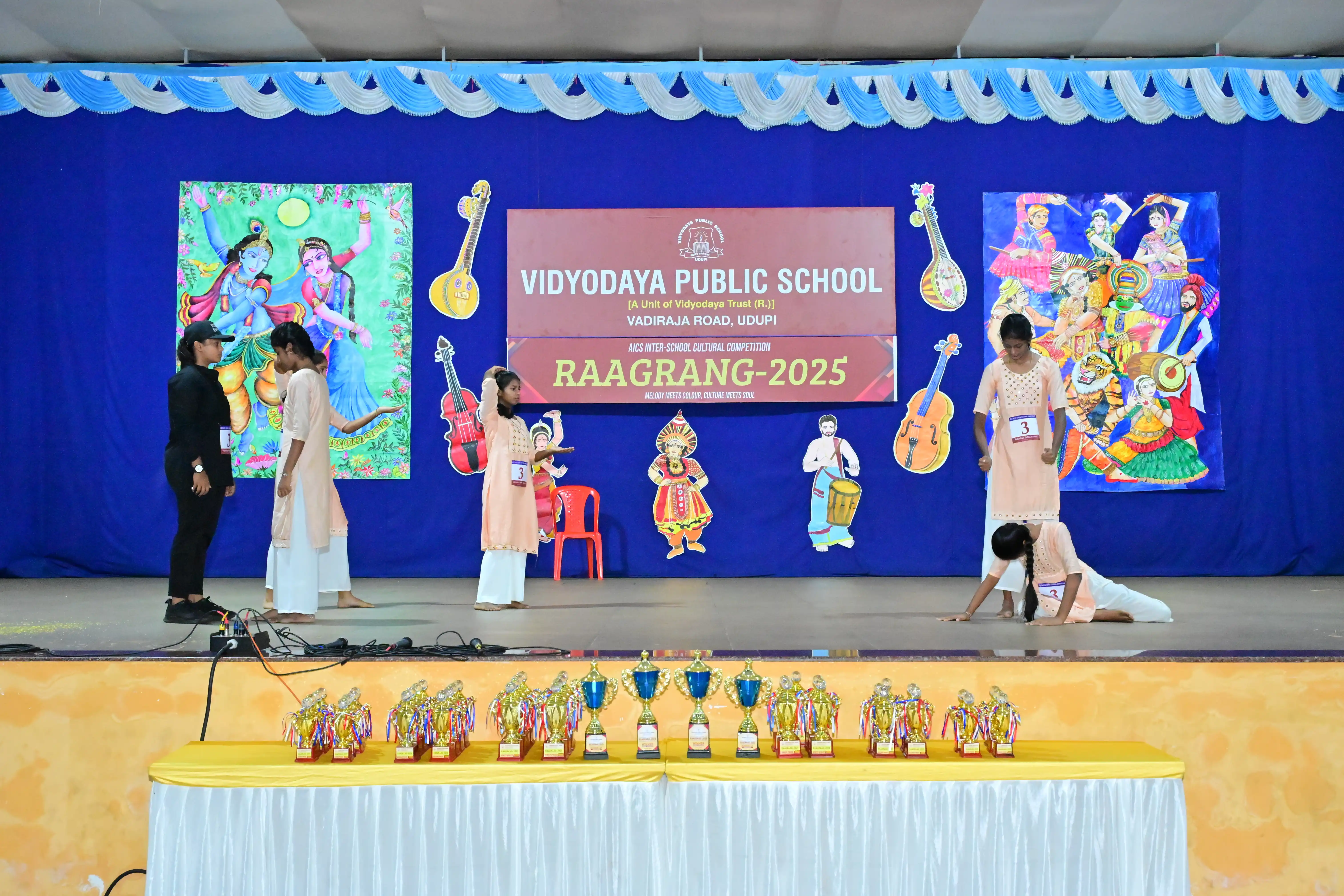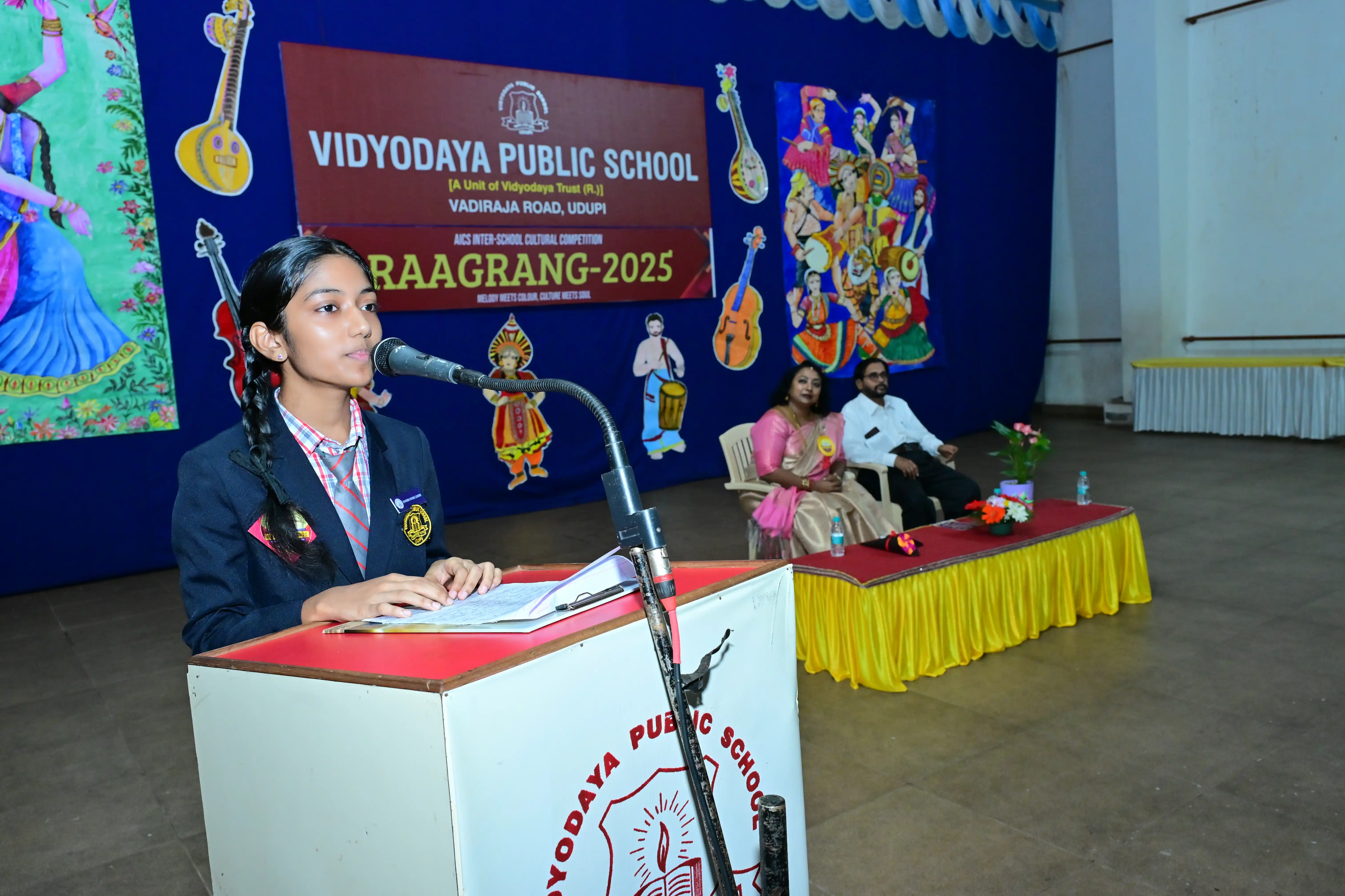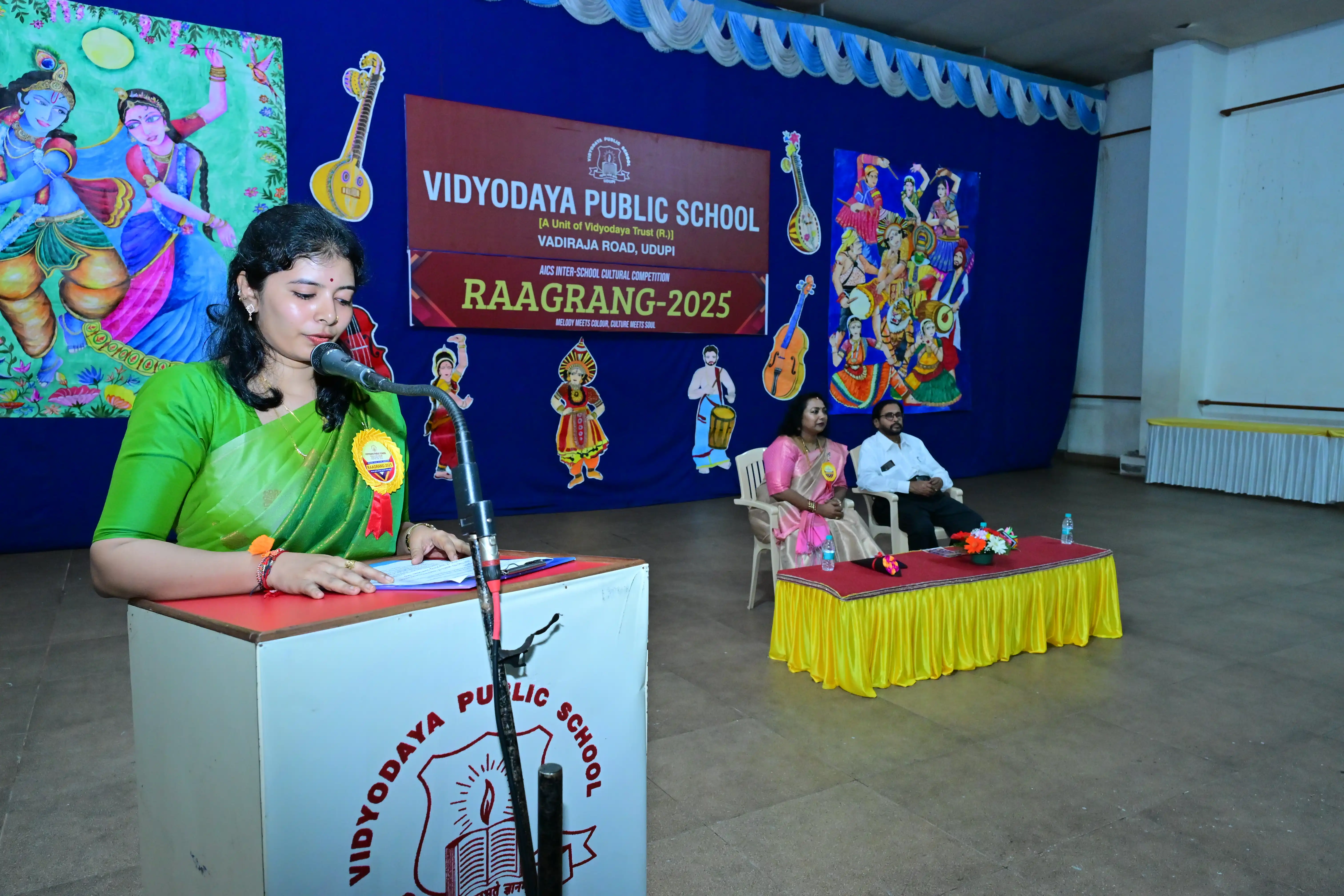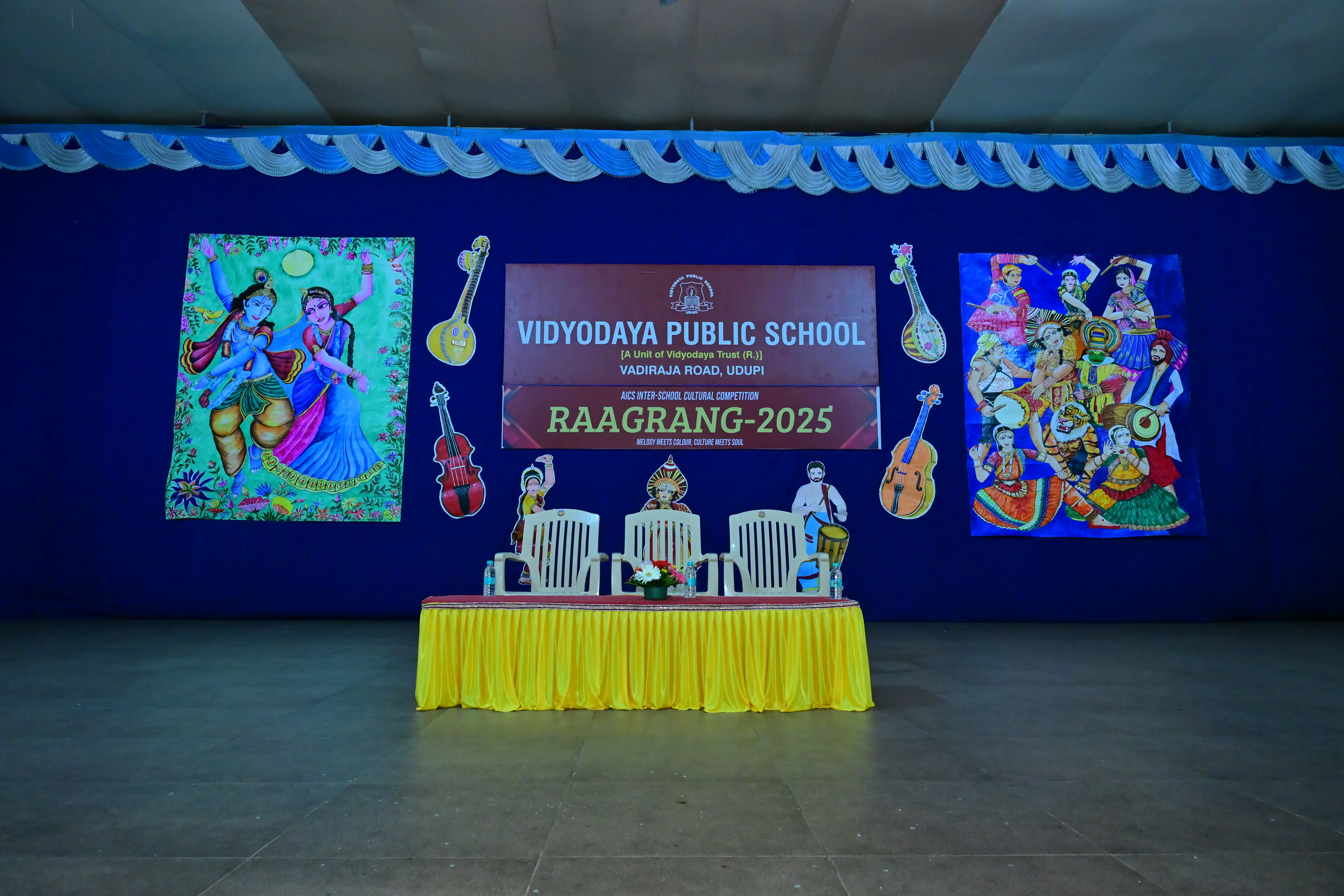 Vidyodaya Public School hosted “RAAGRANG -2025 MELODY MEETS COLOUR, CULTURE MEETS SOUL” - AICS Inter-School Competition, which saw an impressive turnout of 292 participants from 27 schools, accompanied by 34 teachers. The event aimed to foster creativity, talent, and healthy competition among students.