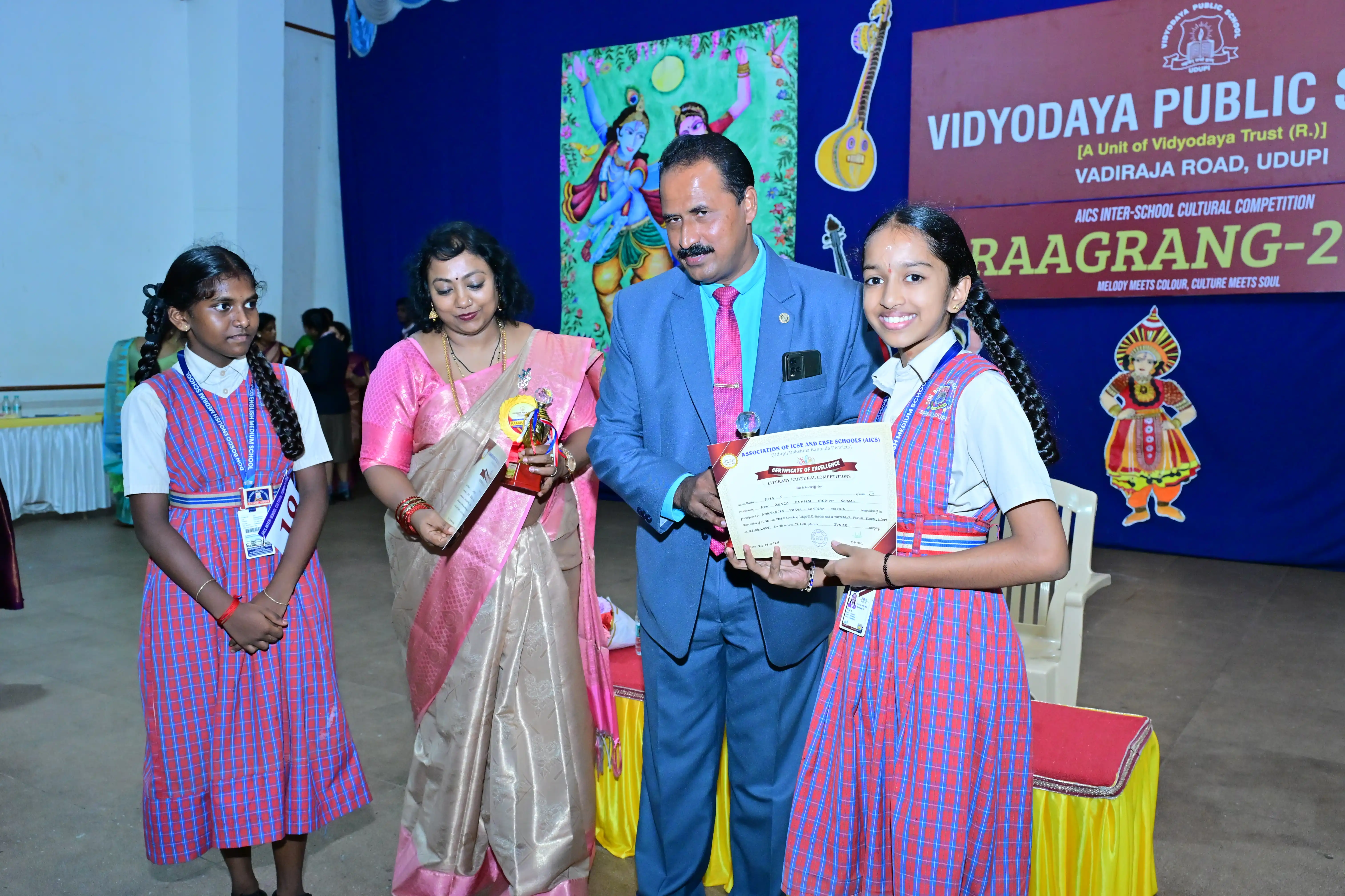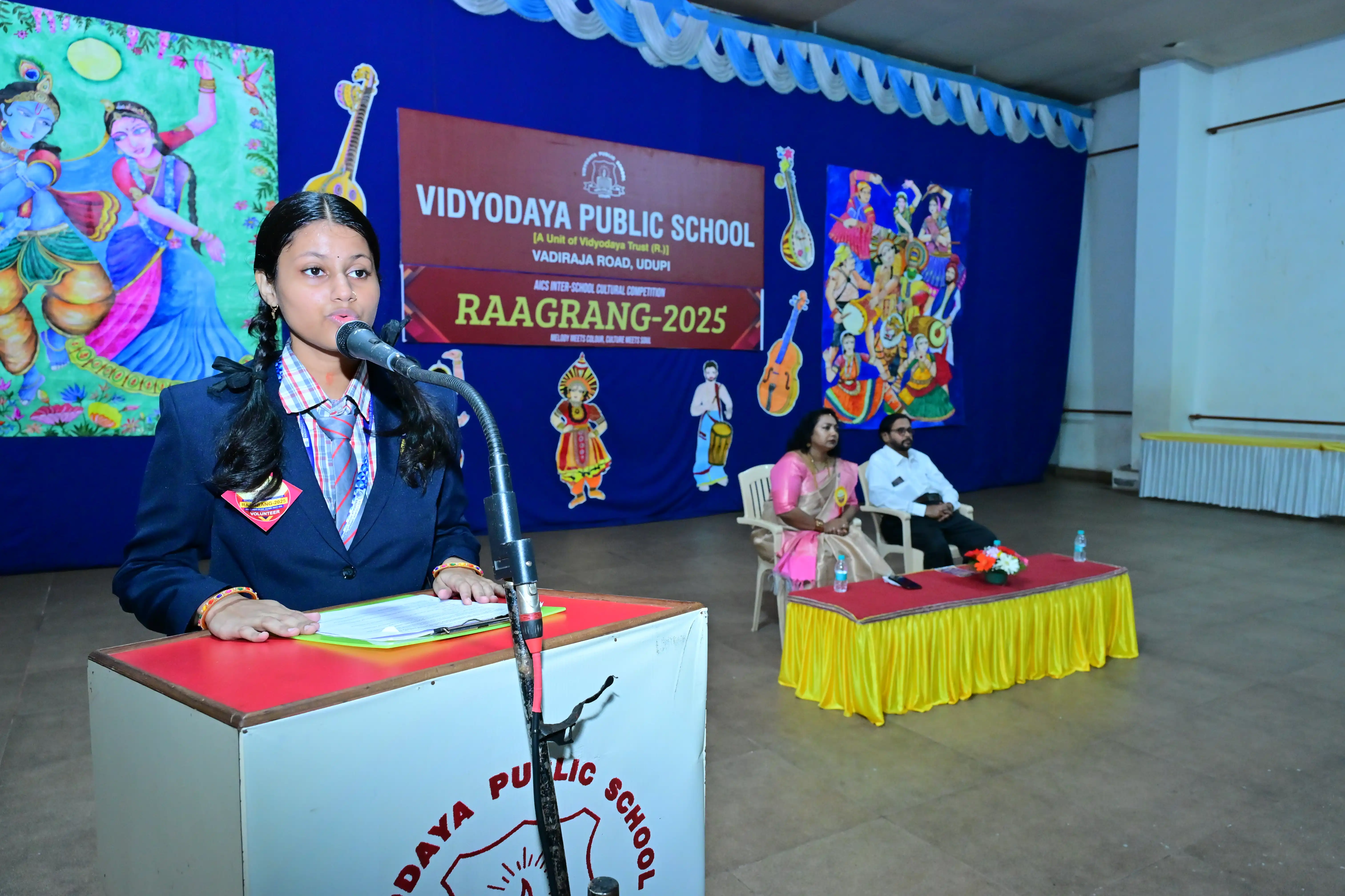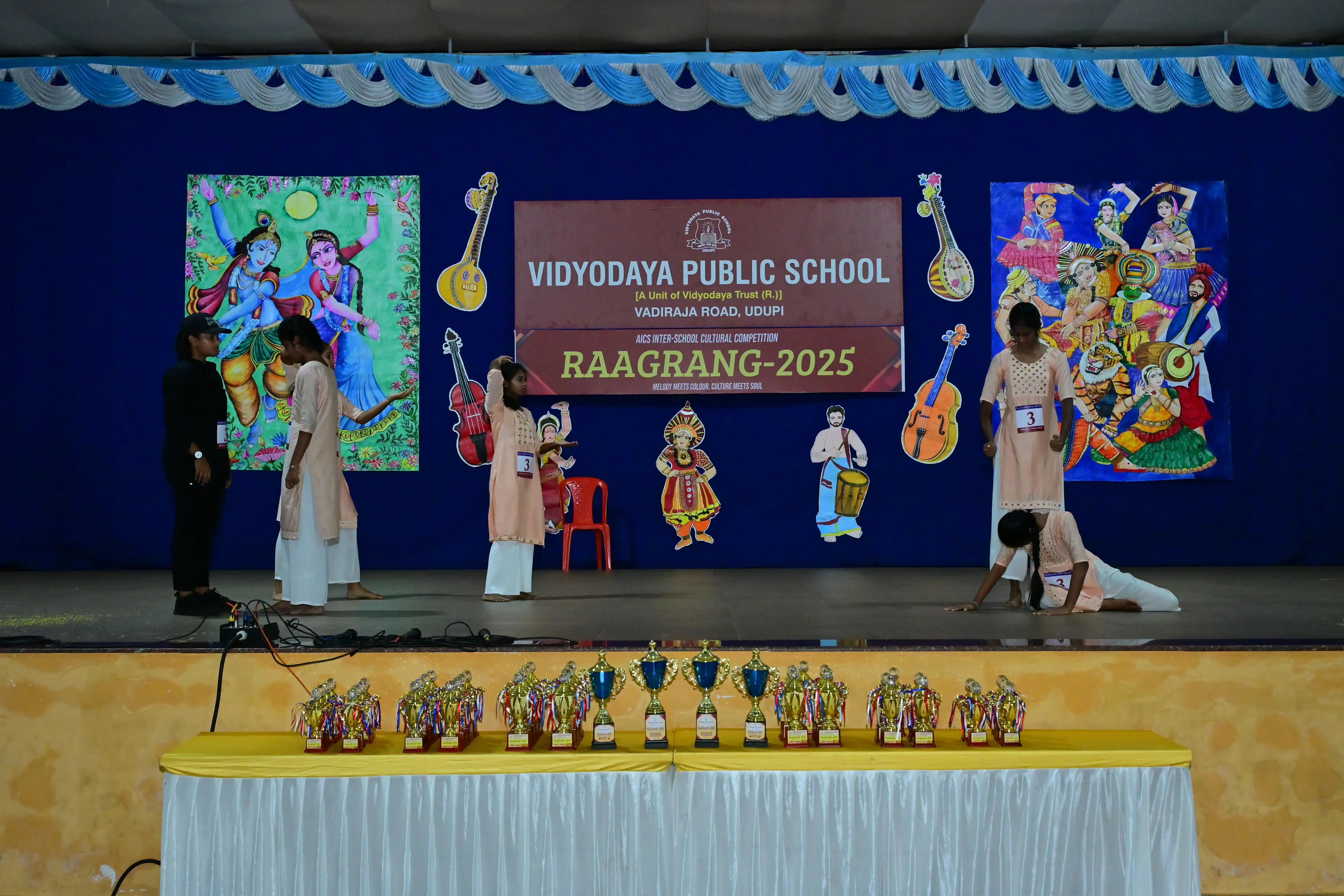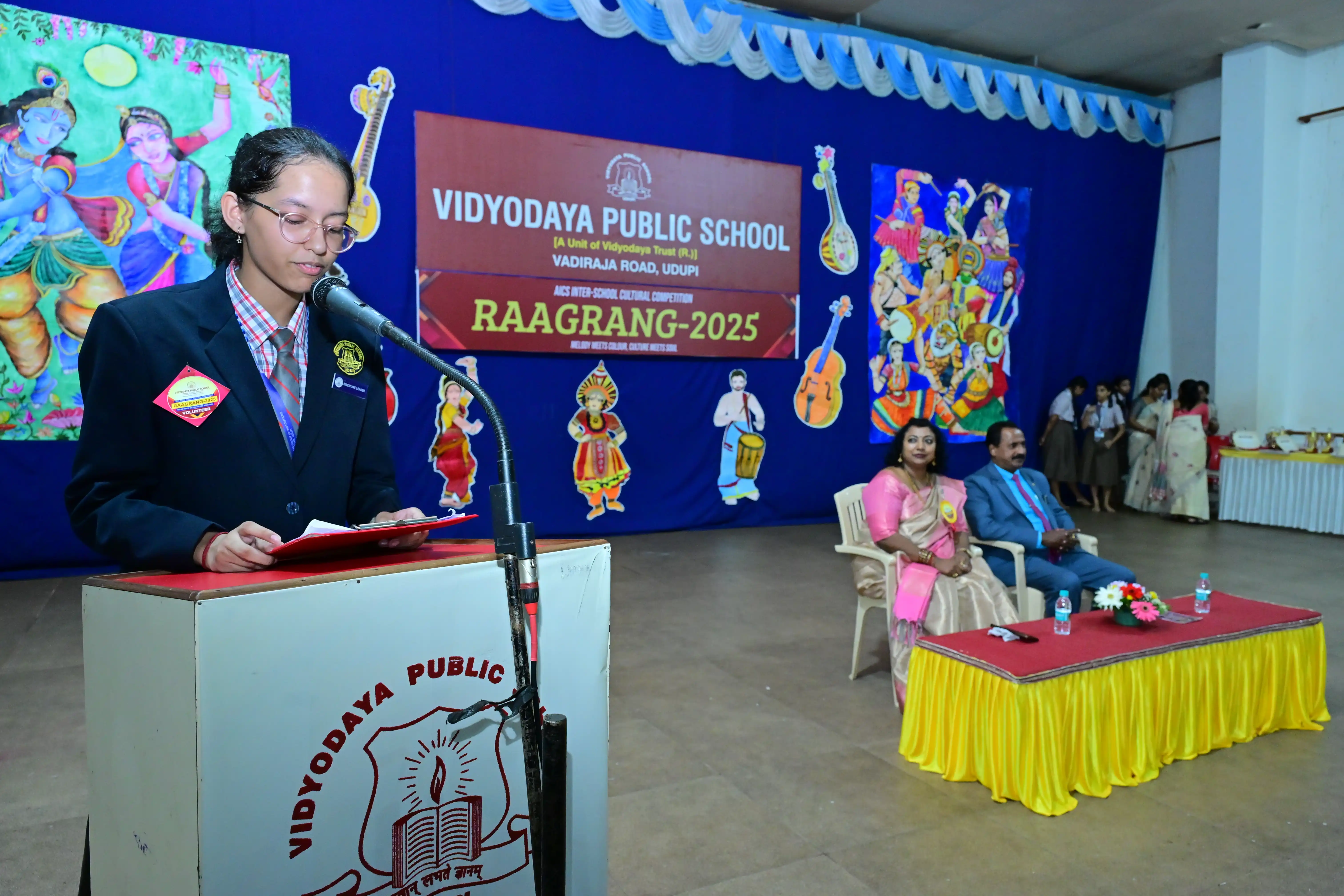 Vidyodaya Public School hosted “RAAGRANG -2025 MELODY MEETS COLOUR, CULTURE MEETS SOUL” - AICS Inter-School Competition, which saw an impressive turnout of 292 participants from 27 schools, accompanied by 34 teachers. The event aimed to foster creativity, talent, and healthy competition among students.
