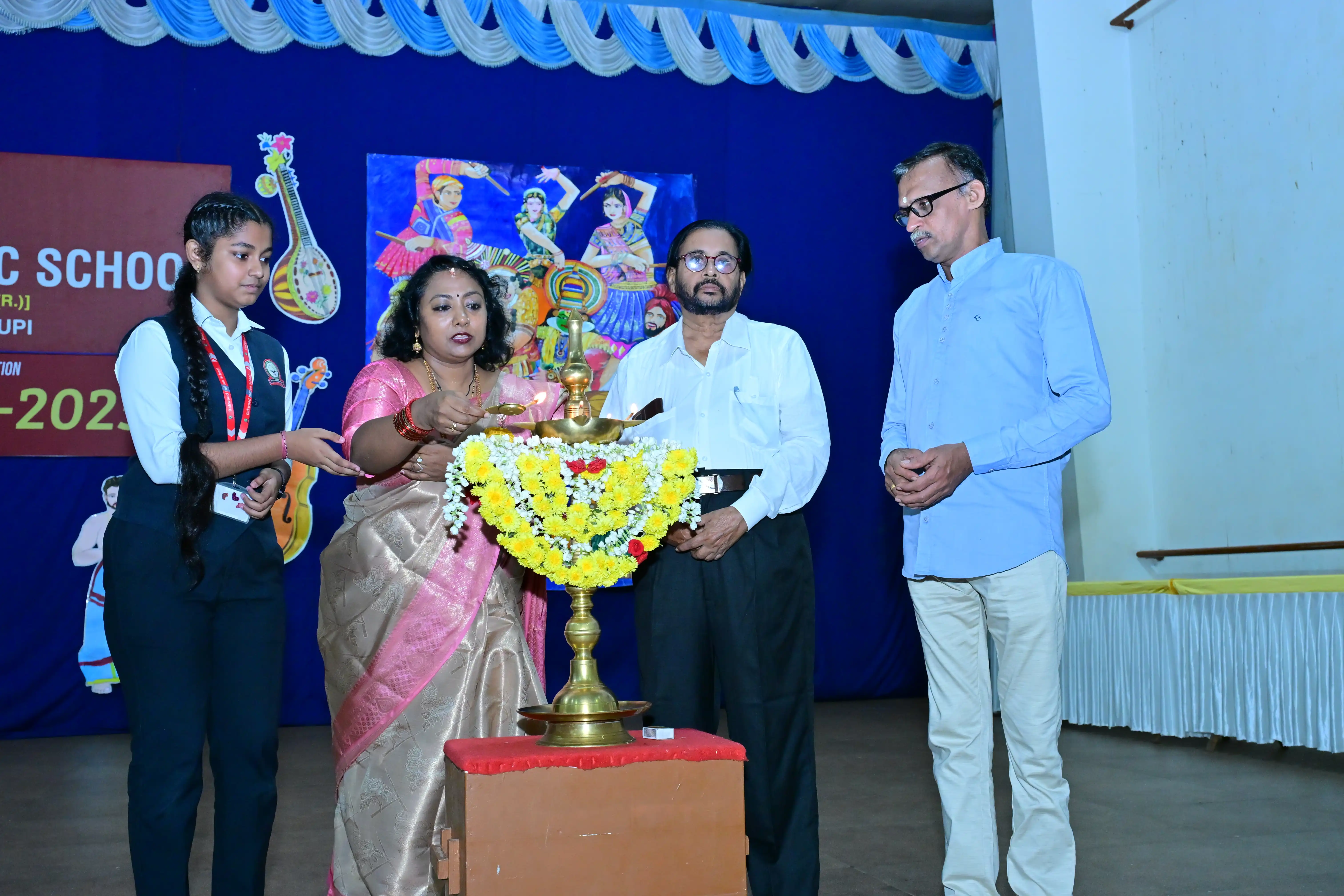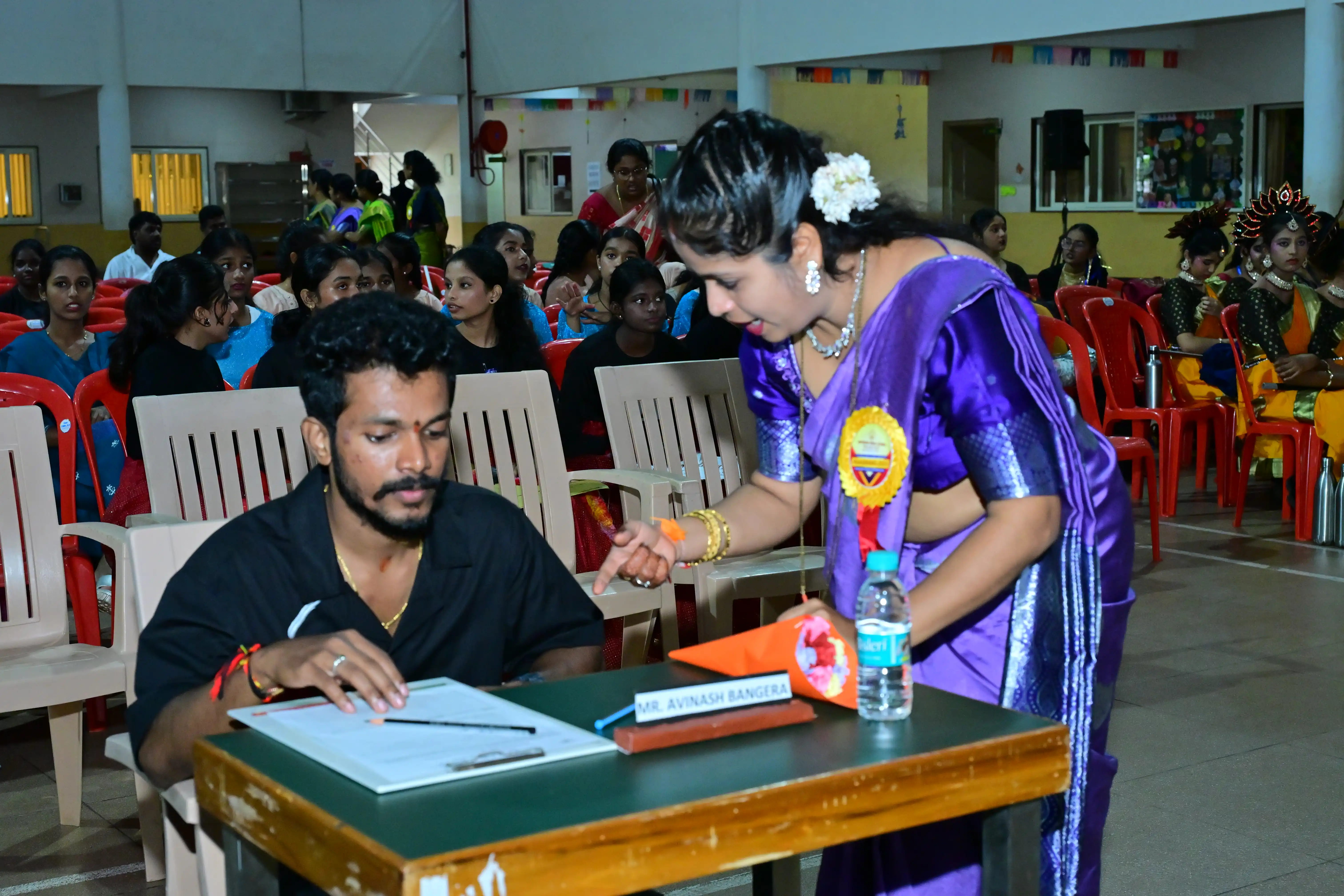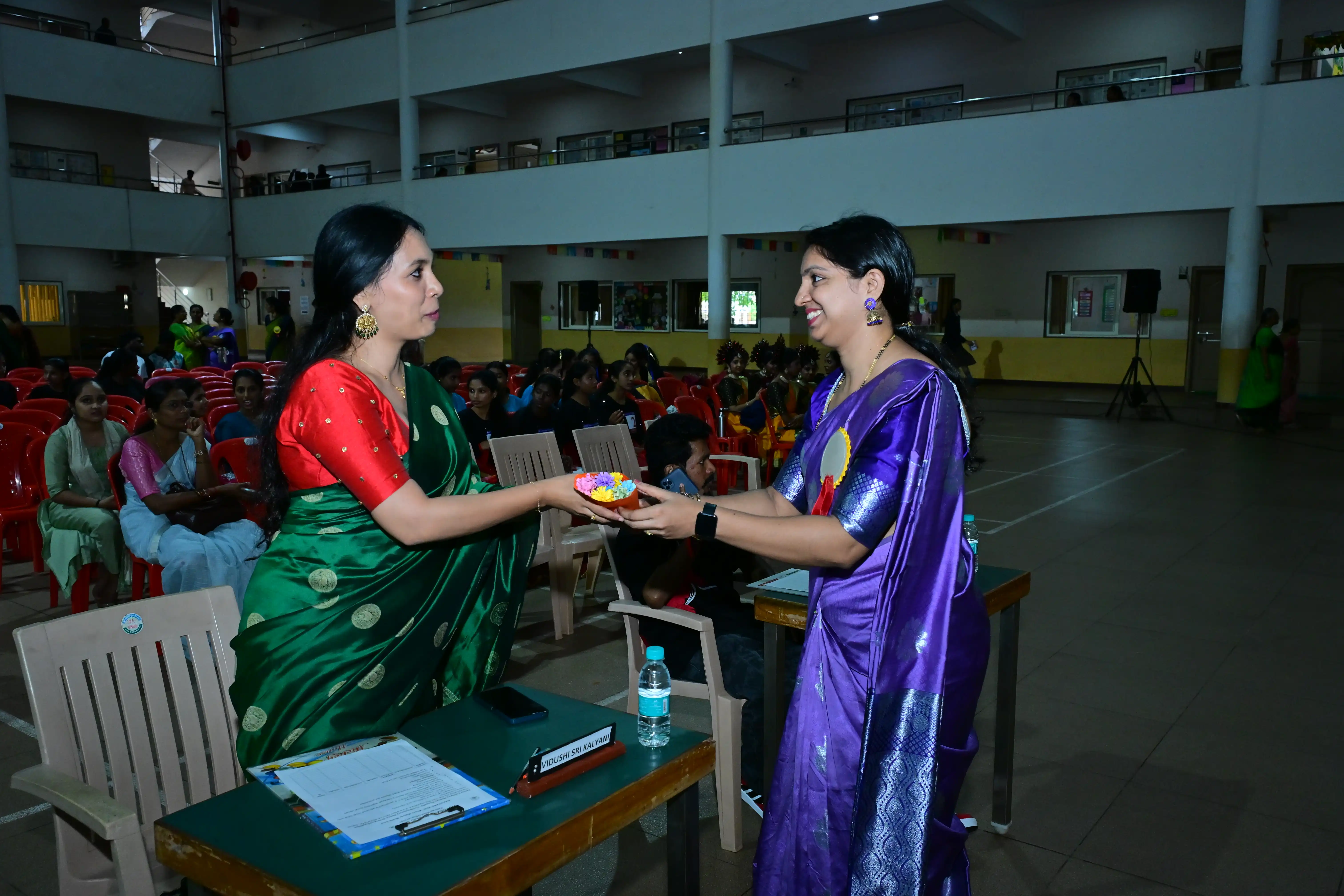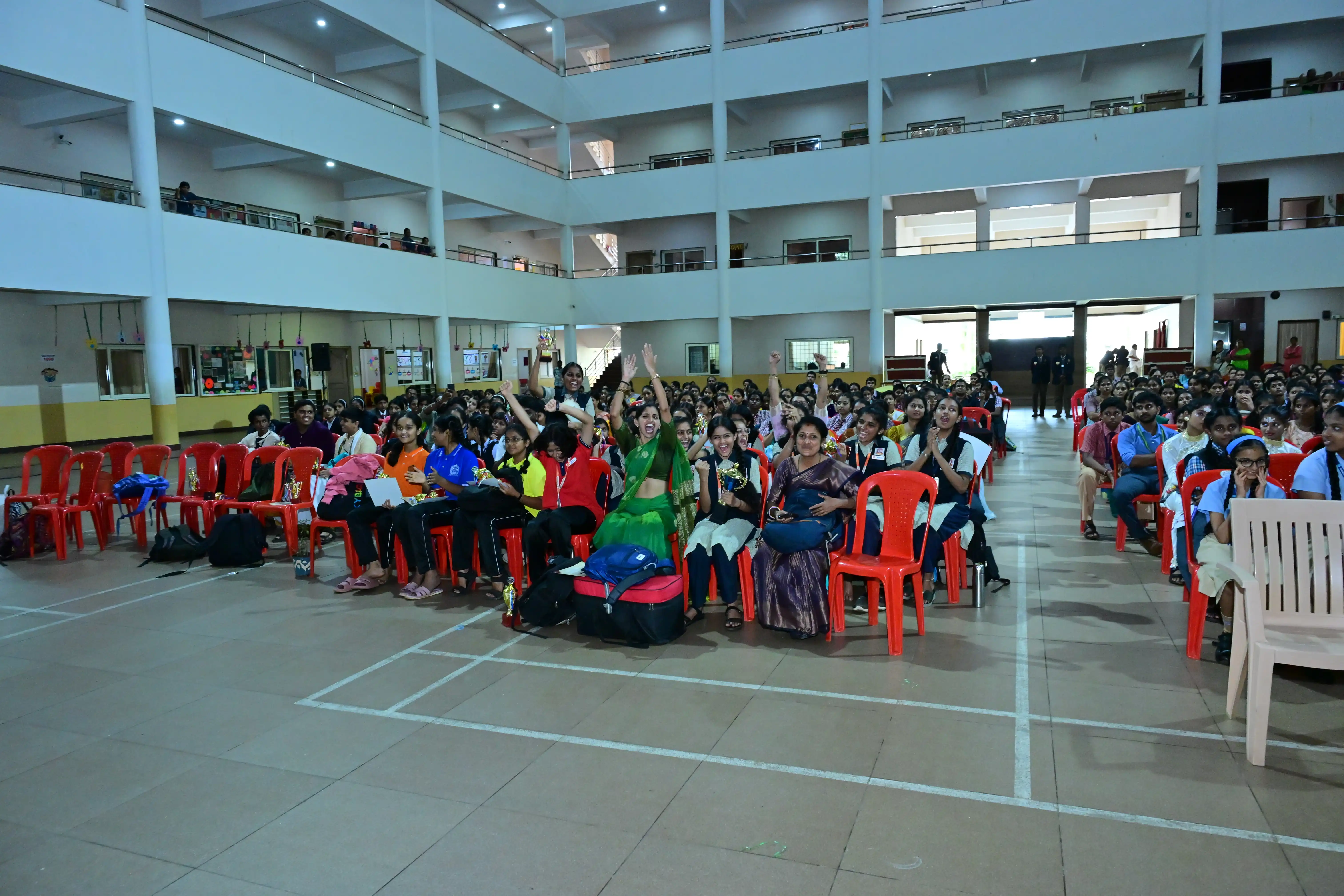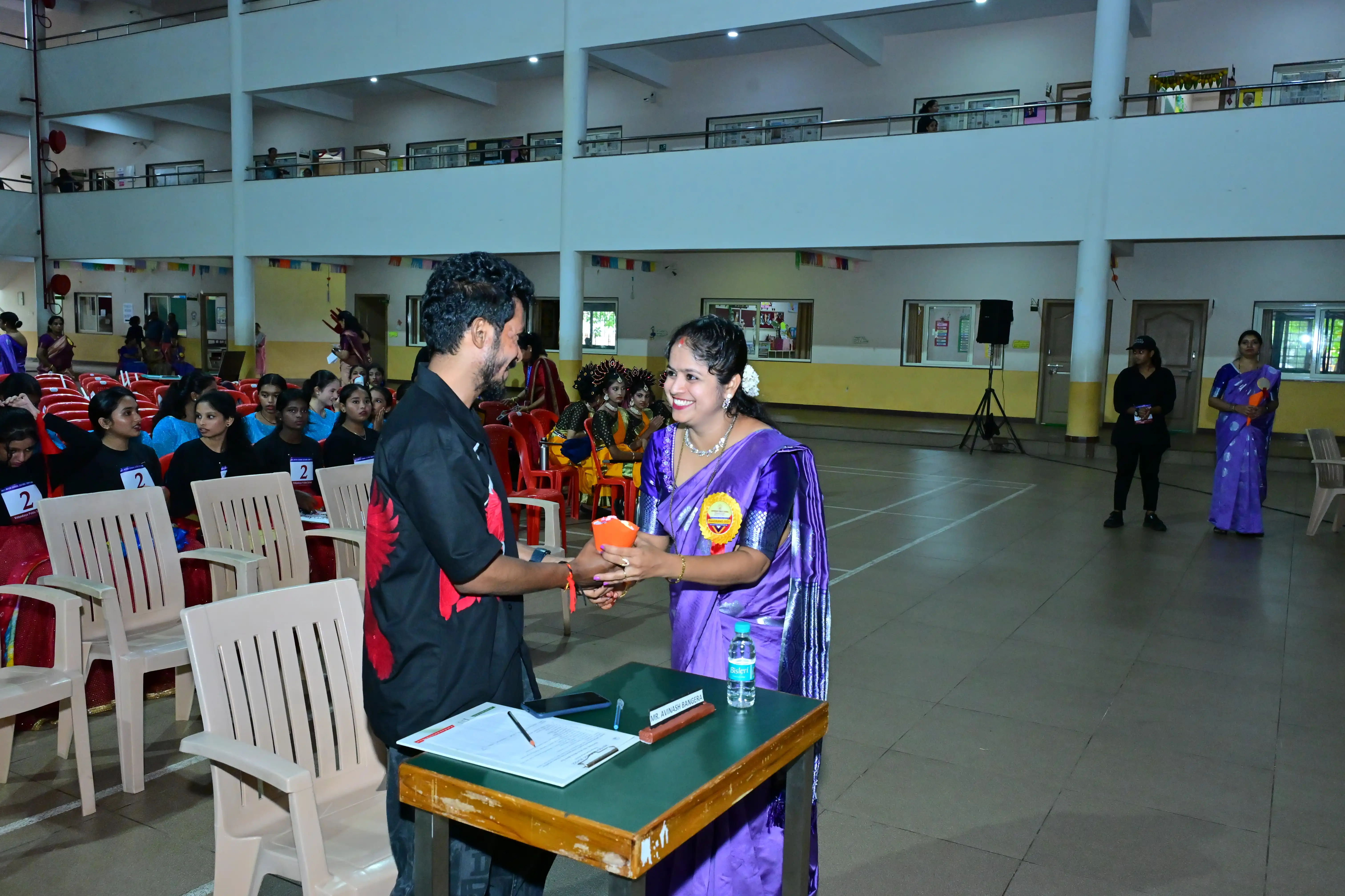 The inaugural function was graced by Chief Guest Dr. B. Bhaskara Rao. Dr. Rao, along with our Principal, Mrs. Anitha Prabhat Raj, lit the lamp, marking the commencement of the event. The Chief Guest and Principal addressed the gathering, setting the tone for the event.